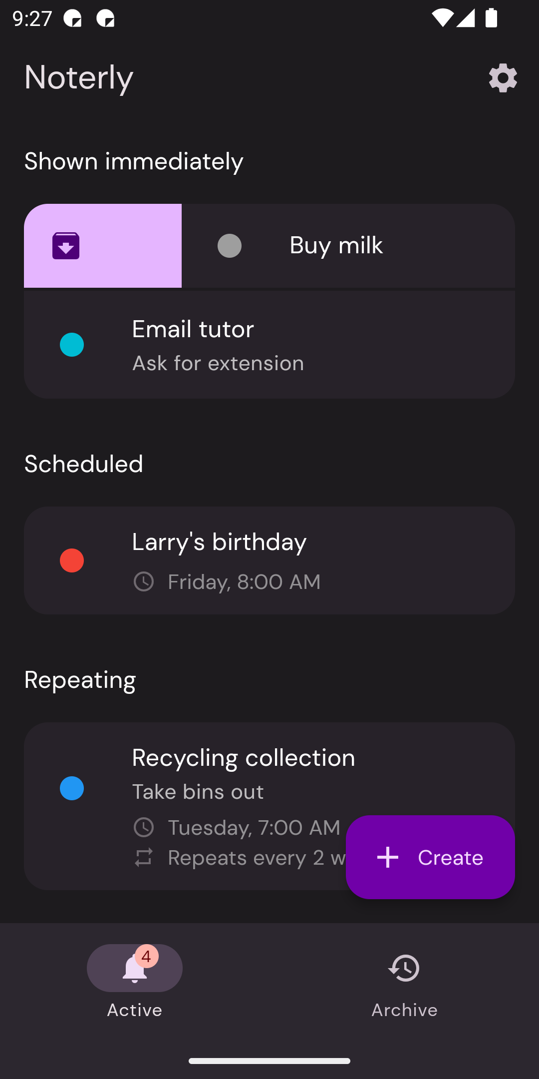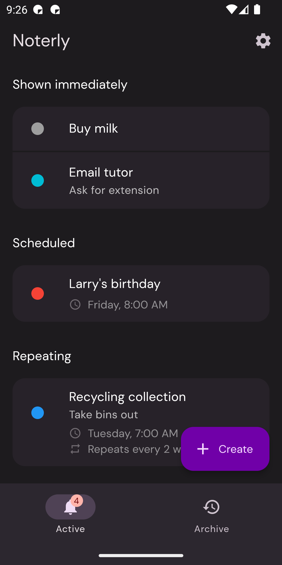 Simple notification remindersA simplistic app for Android, allowing users to create notifications to use as reminders. Localised into over 6 languages, uses Material You and has achieved high ratings on Google Play.